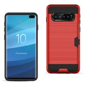 Reiko SAMSUNG GALAXY S10 Plus Slim Armor Hybrid Case With Card Holder In Red