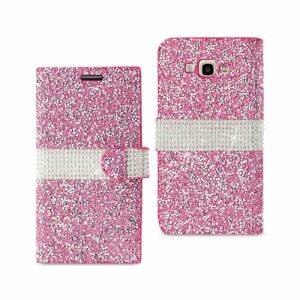 REIKO SAMSUNG GALAXY J7 DIAMOND RHINESTONE WALLET CASE IN PINK