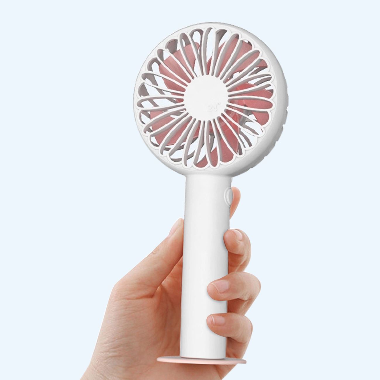- – HANDHELD & PORTABLE DESIGN– Mini size: Just hold it in your hand to get cool when waiting in line, doing exercise, watching movie, reading and travelling. Also when you go outside, you can put it in your bag and take it to anywhere. The sturdy desktop fan produces a soft breeze to keep you cool and relaxed Ultra-quiet. This premium USB rechargeable personal fan is an excellent gift to your family or friends.