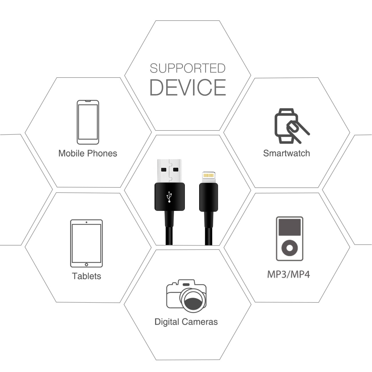 Reiko 3.3FT PVC Material 8 PIN USB 2.0 Data Cable In Black And Luxury Packaging