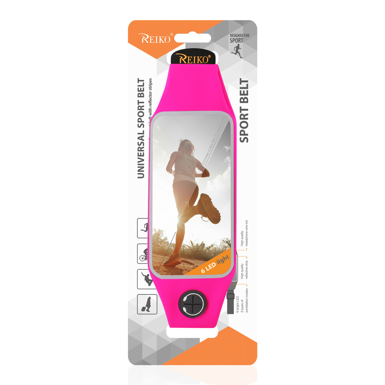 REIKO RUNNING SPORT BELT FOR IPHONE 7 PLUS/ 6S PLUS OR 5.5 INCHES DEVICE WITH TWO POCKETS AND LED IN PINK (5.5×5.5 INCHES)