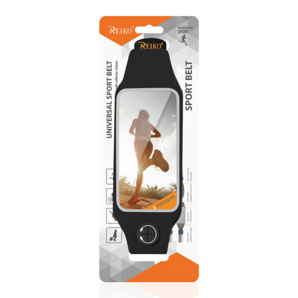 REIKO RUNNING SPORT BELT FOR IPHONE 7 PLUS/ 6S PLUS OR 5.5 INCHES DEVICE WITH TWO POCKETS IN BLACK (5.5×5.5 INCHES)