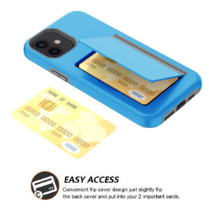 TPU PC Hybrid 2-in-1 Flip Card Holder Phone Case for Apple iPhone 12 Mini In Blue